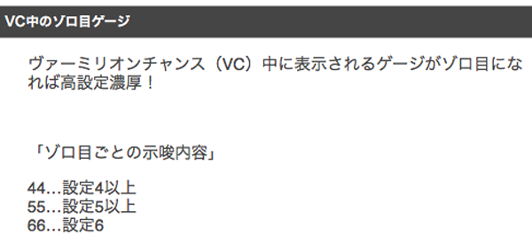 また、ヴァーミリオンチャンス中に表示されるゲージが44なら設定4以上、66なら設定6が濃厚だ。