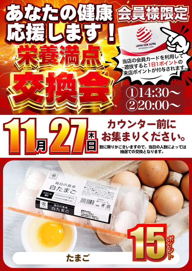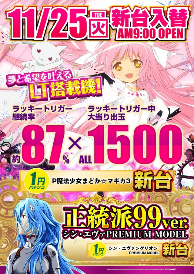 明日11月25日(火)新台入替、ご来店をお待ちしております♪