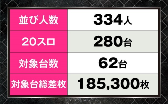 朝から20スロの設置台数を超える、334人のファンが列を成した。