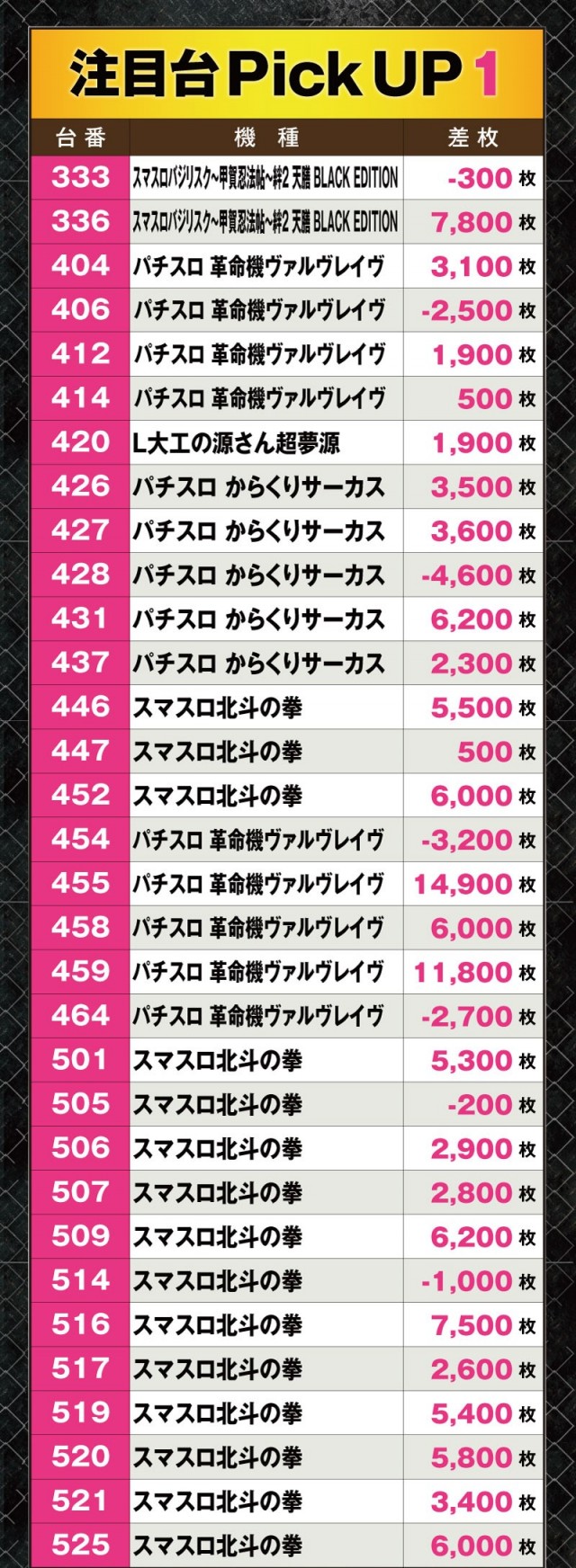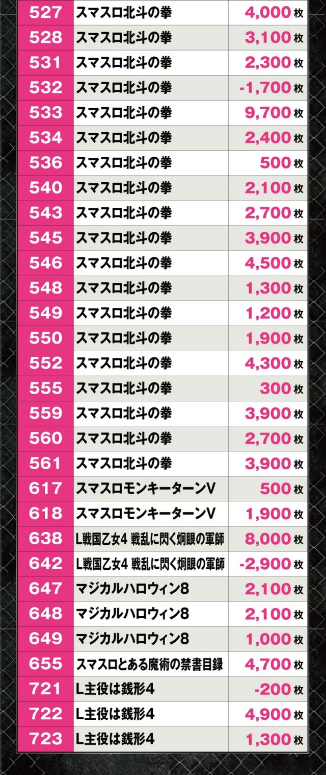 さらにさらに『スマスロ北斗の拳』は設置台数の約半数、なんと34台が好調台となっており、対象総差枚数は+111,700枚と驚異的な数値だった!!