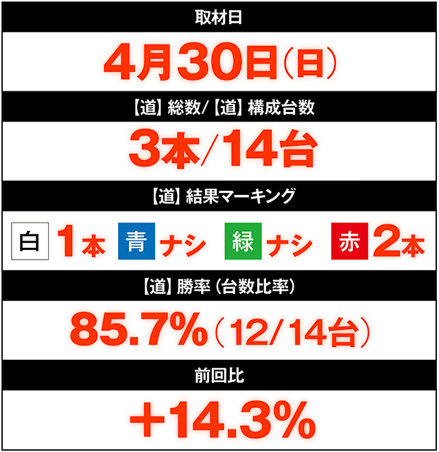 前回3月26日のヒーローズロードで、凄まじい成績を収めた「イチロク八代店」。