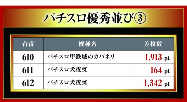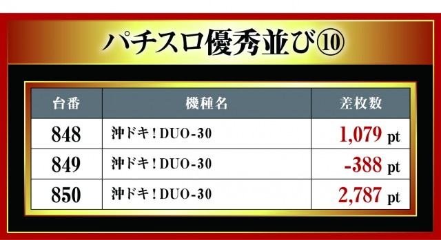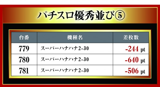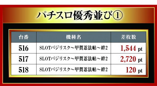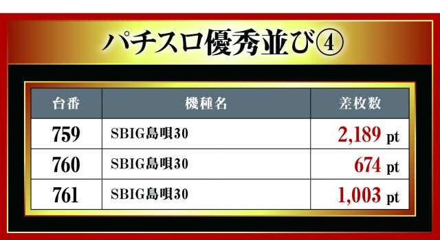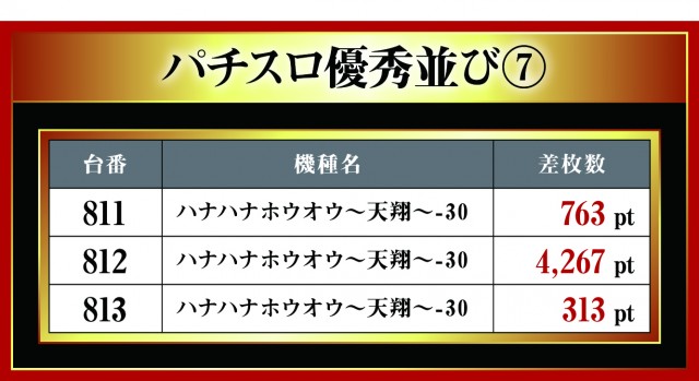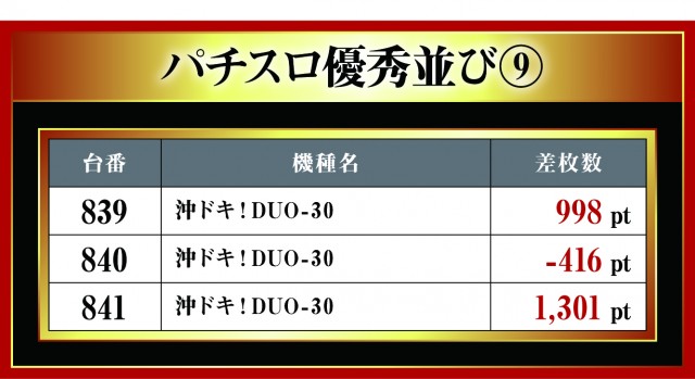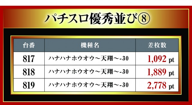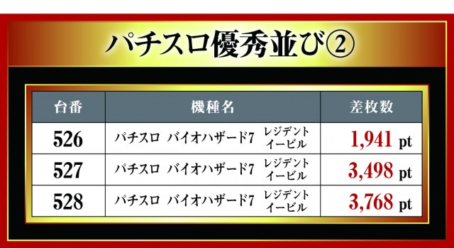 月イチで実施される三重北ウイング4店舗を徹底取材する「はねバト!」。10月1日に実施された「四日市中央店」のパチスロ3台並びの優秀台をお伝えしていこう。これが3回目ということもあり、過去の結果と照らし合わせればおのずと見えてくるということで、やはり、6.5号機の2機種付近と『ハナハナホウオウ~天翔~-30』が今回も3台並びとなっていたことに注目。そして、『パチスロ バイオハザード7 レジデント イービル』と新鋭30φの『SBIG島唄30』 の存在も見逃せない! 特に後者は沖スロが強いウイングとしては今後も要チェックだ!!
