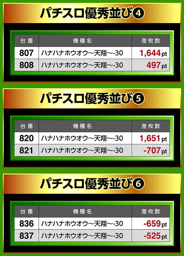 「ハナハナホウオウ~天翔~-30」からは、4つの並びをピックアップ。