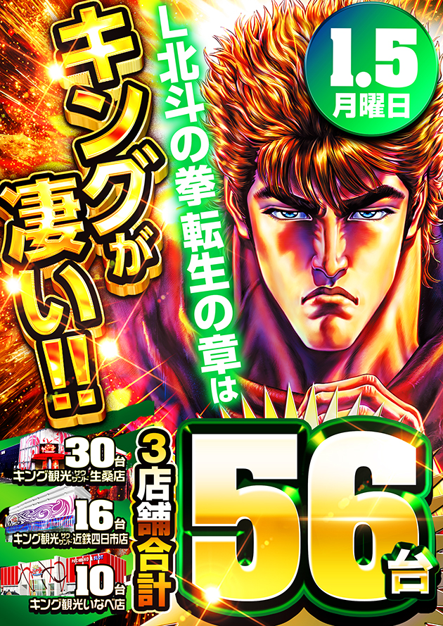 三重県でその名を轟かす「キング観光グループ」に、DMMぱちタウンが注目! 毎月7日に同グループ北勢4店舗をターゲットとし、徹底取材を行うのが本企画「王様伝説」。各店舗で飛び出した「伝説記録」をまとめてお届けしよう! 5月7日に実施さ…