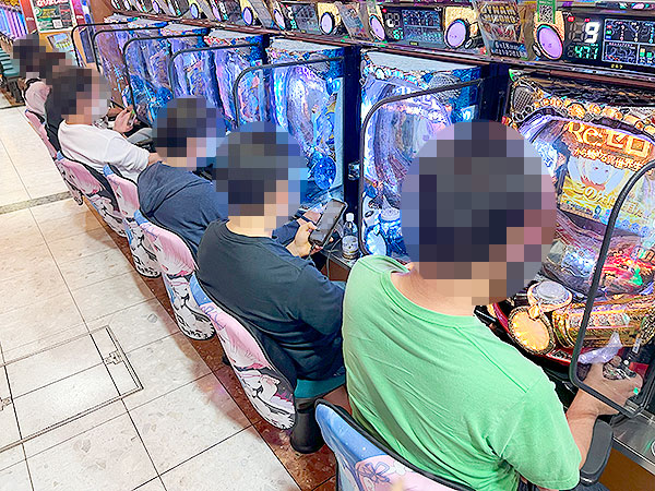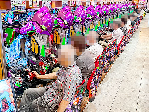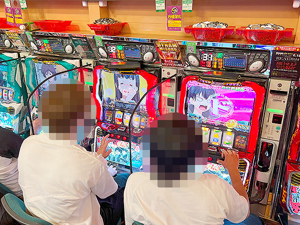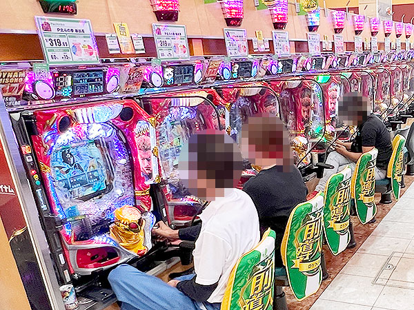 15時半ごろの4円パチンコを見ると「新世紀エヴァンゲリオン〜未来への咆哮〜」や「P Re:ゼロから始める異世界生活 鬼がかりver.」が盛況の様子。華麗なパフォーマンスを披露するプレイヤーを多数目撃している。