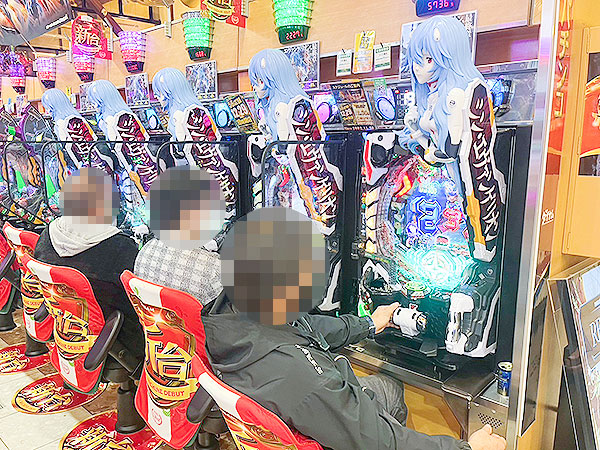 14時ごろの4円パチンコでは「ぱちんこ シン・エヴァンゲリオン Type レイ」や「e Re:ゼロから始める異世界生活 season2」が盛況で、機種のポテンシャルをフルに活かすプレイヤーを複数確認している。