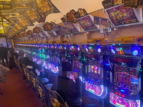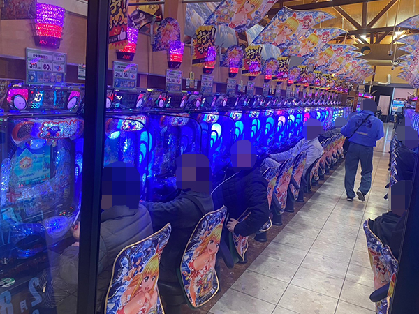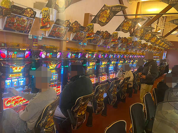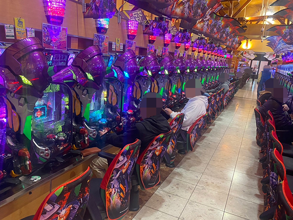 取材時は既に多くのプレイヤーであふれており、パチンコ・パチスロを問わず楽しげな表情でいっぱいだった。