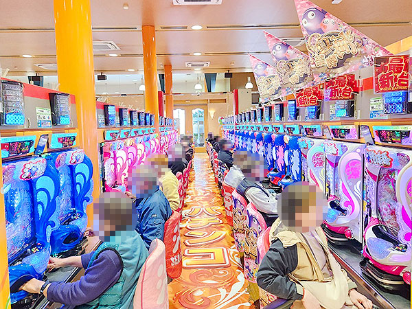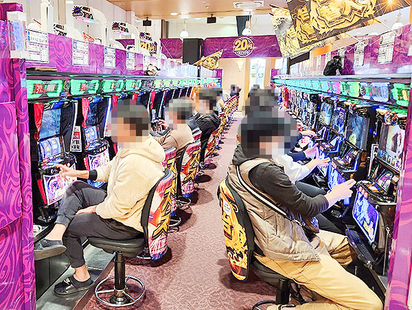 店内では貸し玉料金を問わず様々な機種で、心ゆくまで楽しむプレイヤーの姿が見られた。