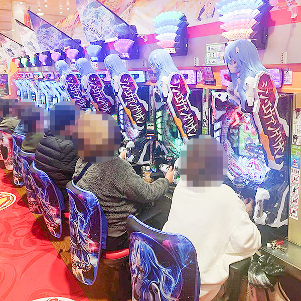 14時半ごろの4円パチンコをチェックすると「ぱちんこ シン・エヴァンゲリオン Type レイ」や「新世紀エヴァンゲリオン〜未来への咆哮〜」が活況の様子。機種性能を上手く引き出すプレイヤーを複数目撃している。