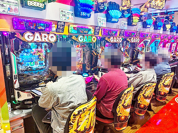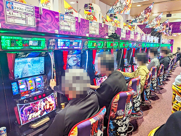 20円パチスロに目を向けると、「押忍!番長4」や「スマスロ北斗の拳」、「パチスロ からくりサーカス」で華麗なパフォーマンスを披露するプレイヤーが見られ、シマ内からは活気が感じられた。