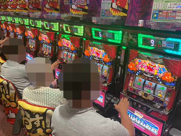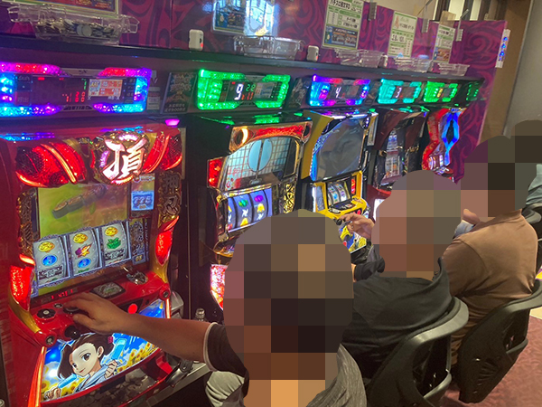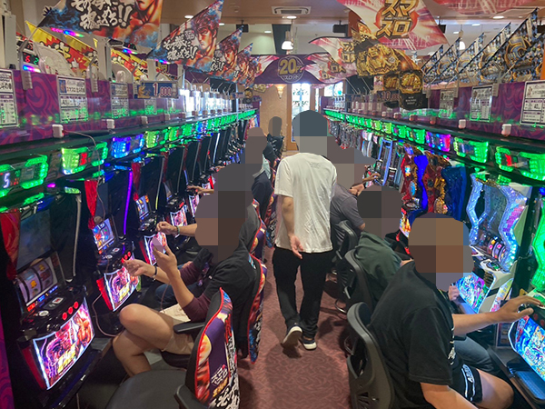 取材時は既に多くのプレイヤーが集結し、パチンコ・パチスロを問わずにぎやかな状況となっていた。