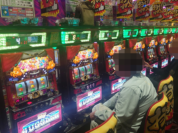 「マイジャグラーⅤ」や「スロット Re:ゼロから始める異世界生活 season2」も活況の様子。機種のポテンシャルを最大限に発揮したプレイヤーを目撃している。