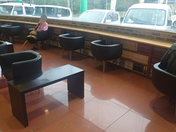 開放感抜群のレストスペースにはたくさんの漫画本が用意されており、誰もがリフレッシュできることだろう。
