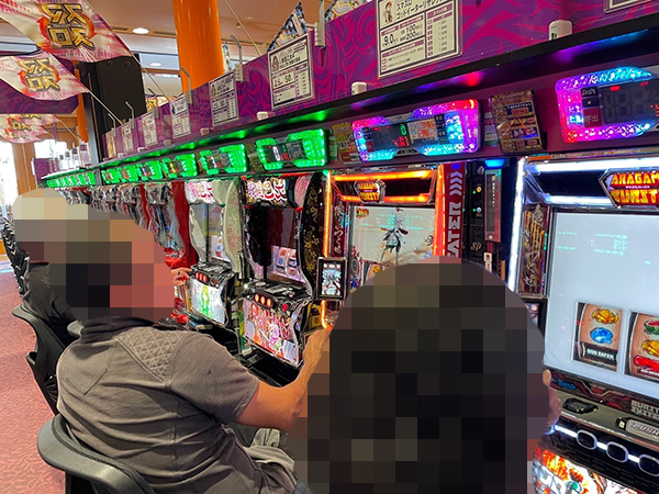 20円パチスロに目を向けると、「スマスロ北斗の拳」や「スマスロ ゴッドイーター リザレクション」で華麗なパフォーマンスを披露するプレイヤーが複数見られ、シマ内からは活気が感じられた。