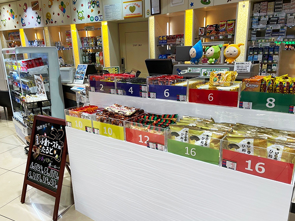 景品コーナーには日用品・お菓子・ドリンク類が豊富に用意されており、おみやげ選びも存分に楽しめることだろう。