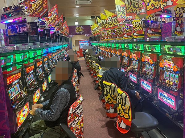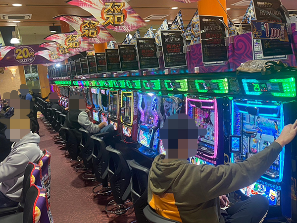 店内には老若男女を問わずプレイヤーが集合。パチンコ・パチスロの各シマから活気が感じられた。