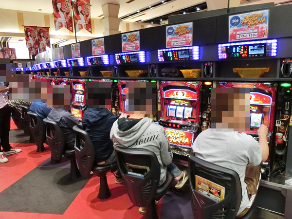 笑顔があふれる華やかなステージが作られたパチスロコーナー。