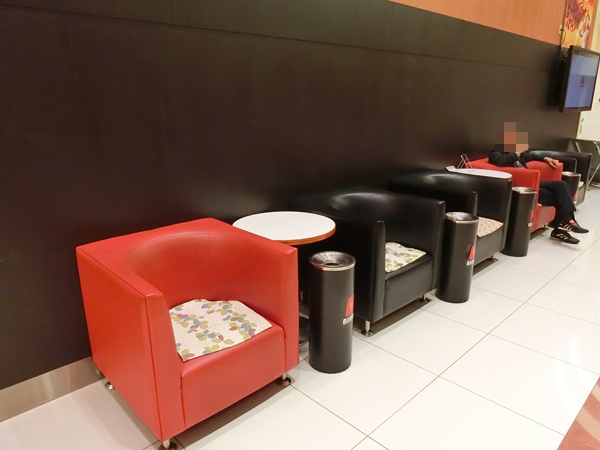 ホールのさまざまな場所に置かれた大きなソファなど、設備面もハイレベル。