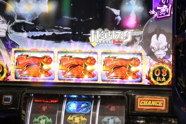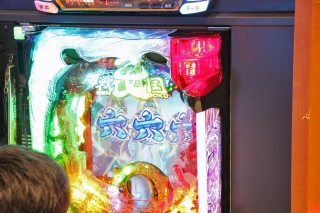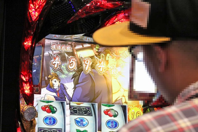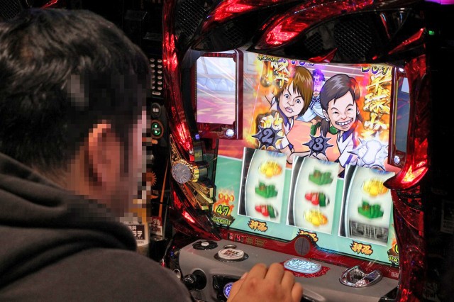 | パチスロの筆頭は『押忍!番長3』や『バジリスク~甲賀忍法帖~絆』。『番長3』は5月頭に増台したというだけに、活気もご覧の通り!朝から絶頂状態へ突入!! | |