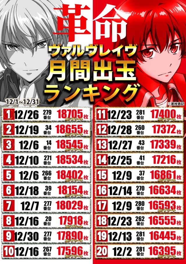 1位 1月17日(土) 2位 1月7日(水) 3位 1月3日(土)
