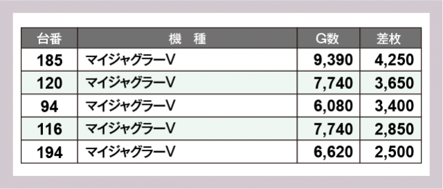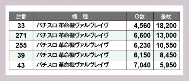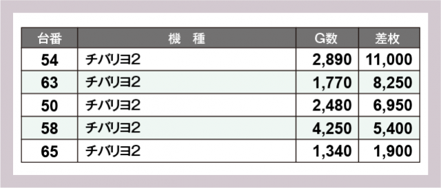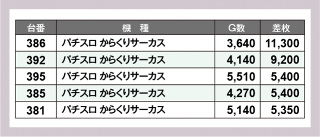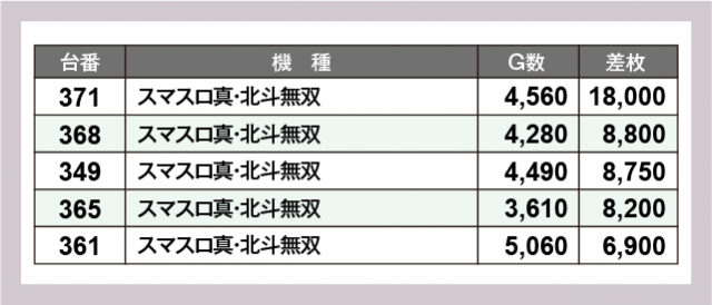 ※差枚数順に掲載しています