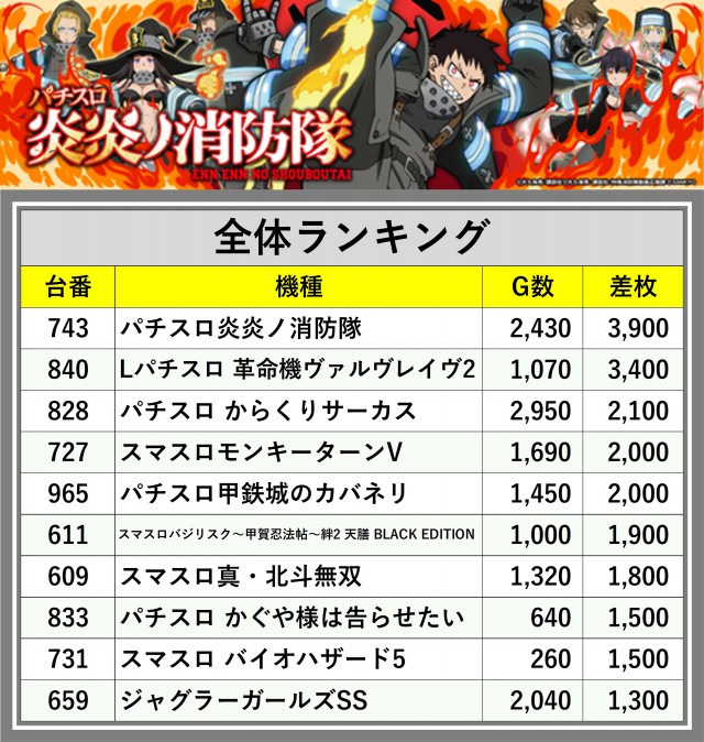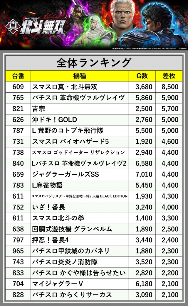 ※差枚数順に掲載しています