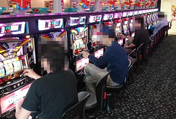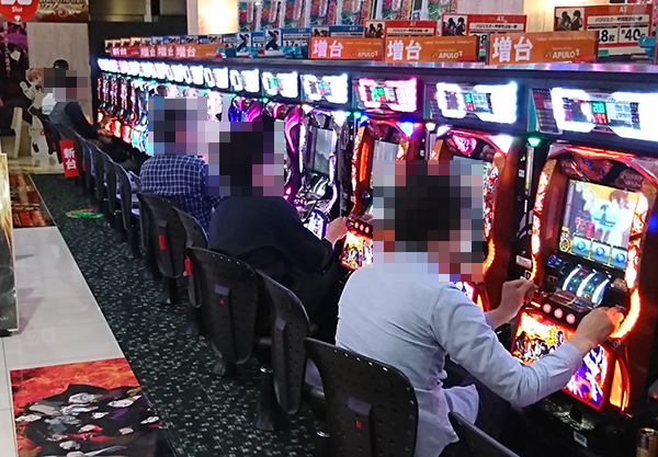 20円パチスロの様子をうかがうと、「バジリスク~甲賀忍法帖~絆」や「ミリオンゴッド-神々の凱旋-」など、多数の機種がにぎやかな状況。
