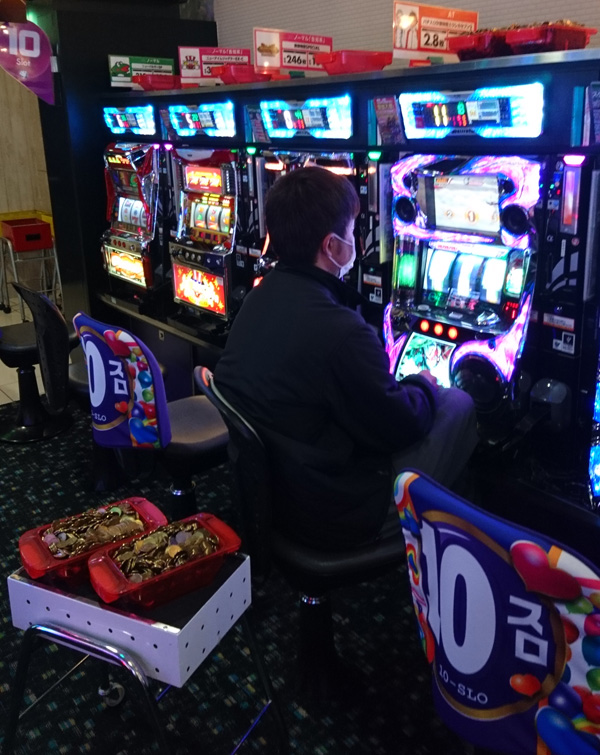 14時ごろのパチンココーナーを見てみると、1円パチンコの人気が高く、すでに多くのプレイヤーで活気づいているといった状況。特に年輩プレイヤーを中心に海物語シリーズの人気が目立っていたが、それぞれが自分の好きな機種を楽しんでいるようで、充実した時間が流れているように感じた。