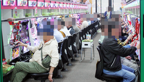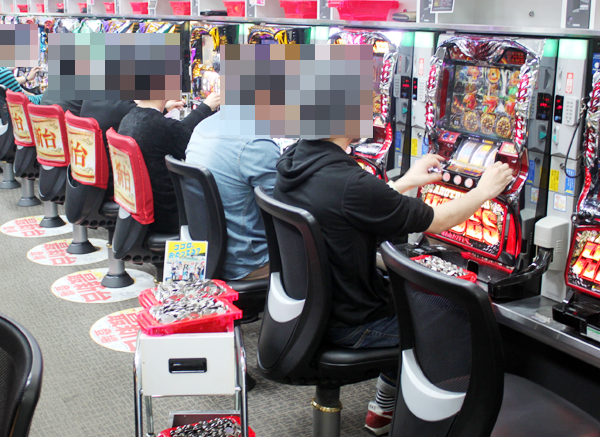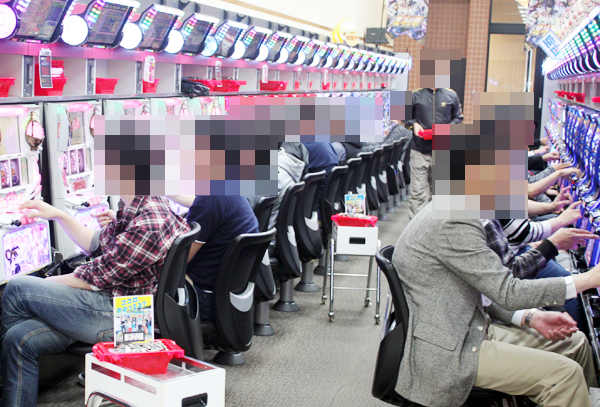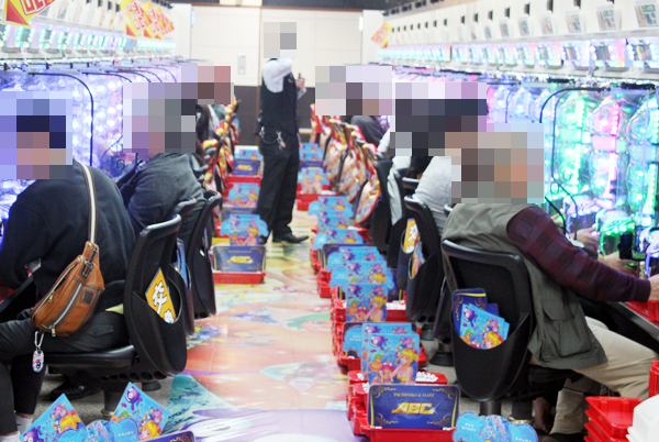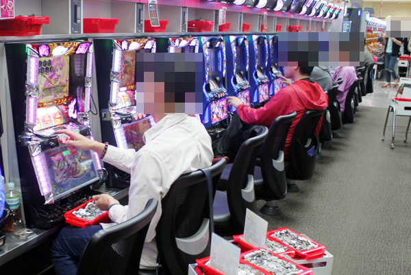 低貸し玉コーナーも人気が高く、1円パチンコでは海物語シリーズが盛況。5円パチスロでは「主役は銭形2」や「沖ドキ!トロピカル」など、さまざまな機種がにぎわっていた。