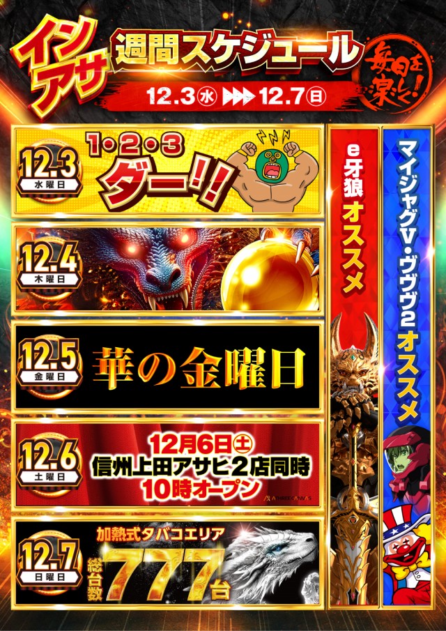 12月13日インアサ×上アサ信州上田アサヒ2店同時10時開店