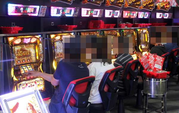 20円パチスロでは「バジリスク〜甲賀忍法帖〜絆」、「ミリオンゴッド-神々の凱旋-」が大きな盛り上がりをみせ、楽しそうな笑顔を浮かべるプレイヤーが多数。シマ内は充実感に満ちており、満足度の高さが感じられた。