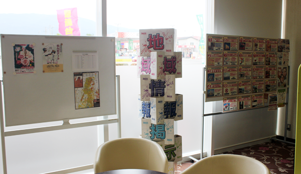 地域にあるさまざまな店舗を紹介している掲示板や広々としたレストスペースなど、遊技面以外の要素も充実。