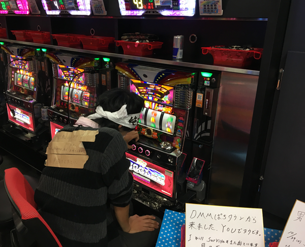 DMMぱちタウンのタレント発掘番組"I will survive"で1次予選を突破したばかりの新人は、開店前から緊張の面持ち。入場抽選後は、いろいろとポーズをとってくれたが動きはどこかぎこちない…。