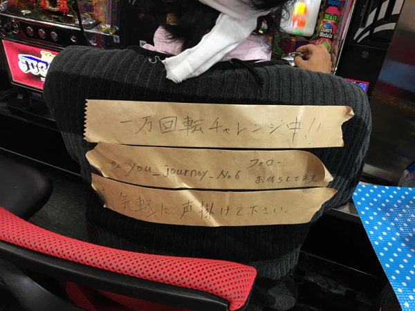 意気込みを書いた色紙やマイクパフォーマンスなど、セルフプロデュースも忘れずに実行。背中に貼ったテープは、見た目こそよくないが…やる気は伝わってきた。