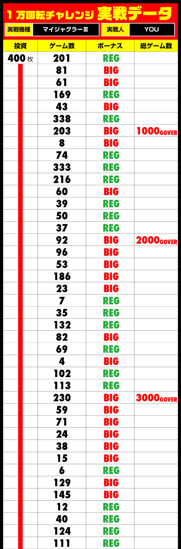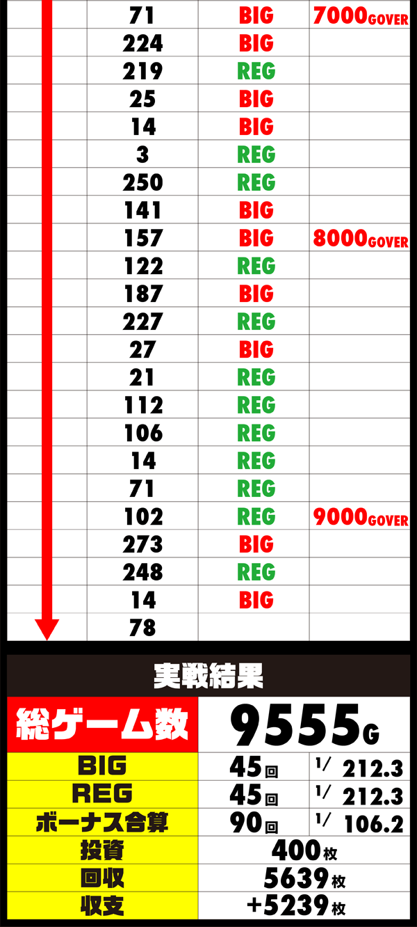大幅なプラスの差枚とボーナス回数が多かったにもかかわらず、おしいところまで到達したがんばりは認めたい!
