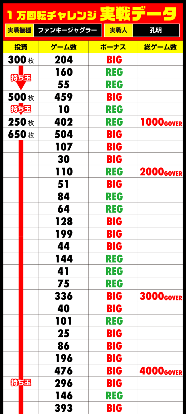 気を取り直して、実戦機種に選んだ「ファンキージャグラー」では順調に回転数を伸ばしていった。