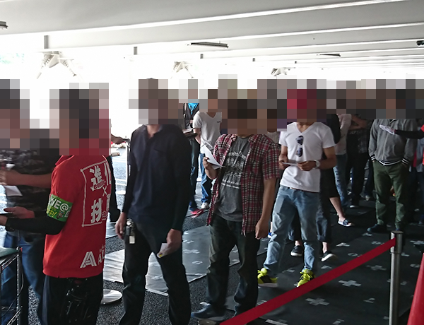 取材日の入場抽選には、およそ300名のプレイヤーが集合。整列場所に形成された長い列が、期待の大きさをあらわしているように思えた。