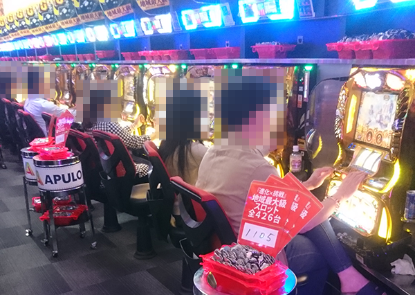 1円パチンコの海物語シリーズや5円パチスロの「SLOT魔法少女まどか☆マギカ2」など、機種の魅力をあじわえているような姿を数多くみることができた。