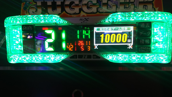 狙っていたカド台のなかでも、実戦機種には「スーパーミラクルジャグラー」をチョイス。