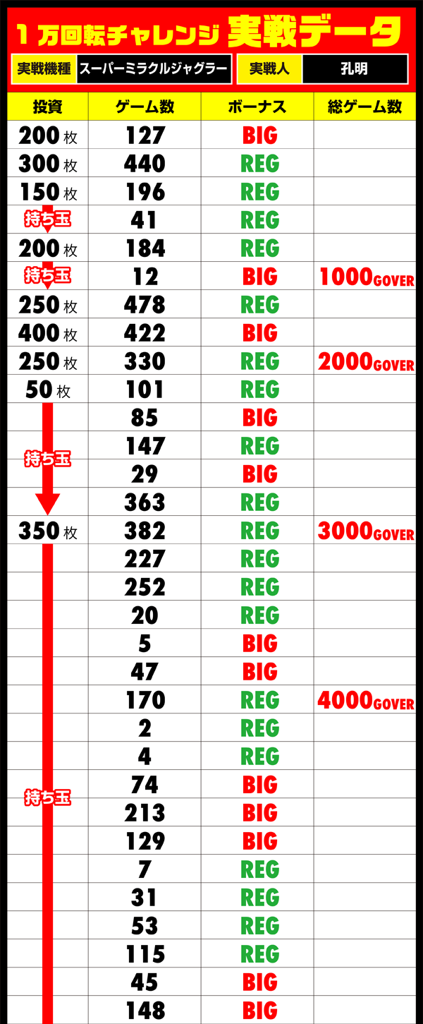 結果的には負けてしまったが、REG確率は高設定の数値を超えるなど、孔明のほうも設定は悪くなかったのでは?