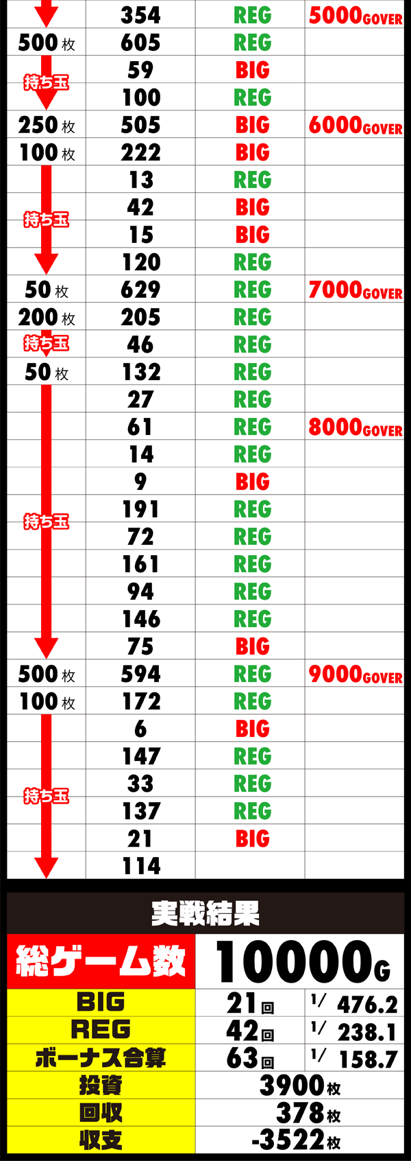 差枚こそマイナスになってしまったが、結果的にチャレンジ成功につながってよかったらしい。