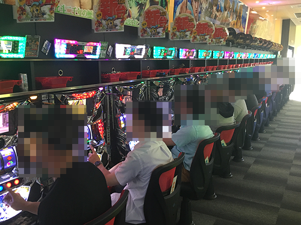 にぎわいが感じられるホール内では、大勢のプレイヤーが明るい表情で遊技を楽しんでいた。
