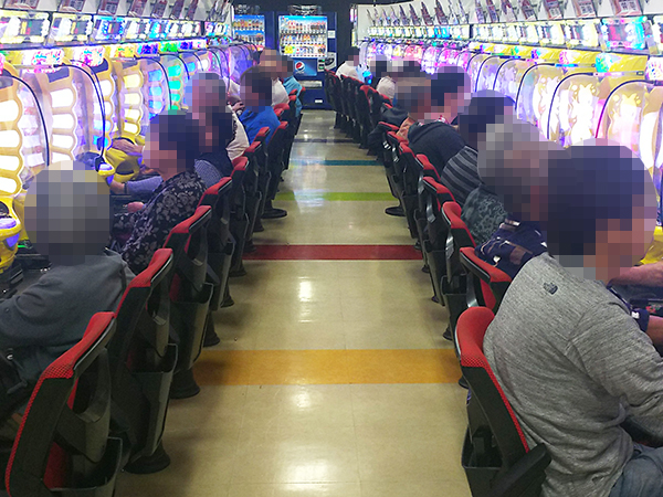 1円パチンコは全体的に高稼働。特に海物語シリーズの人気は高く、空き台を見つけるのがやっとなほどだった。