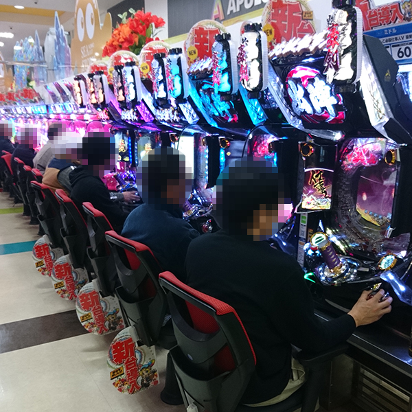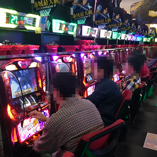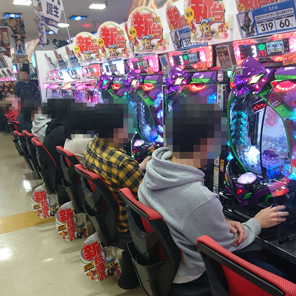 14時過ぎの4円パチンコは、「CRぱちんこ必殺仕事人Ⅴ 豪剣」や「CRヱヴァンゲリヲン 2018年モデル」を中心に盛況。シマ全体が実に微笑ましいムードとなり、機種のポテンシャルを引き出すプレイヤーも目撃している。