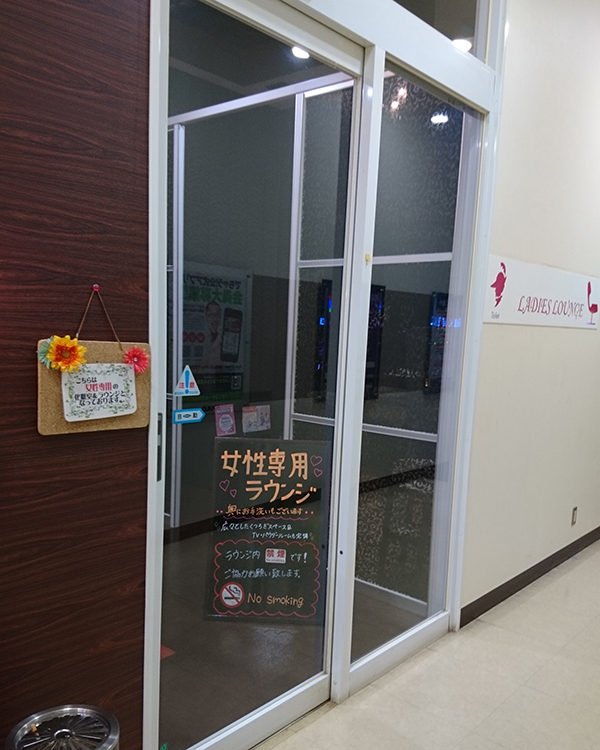 広々としたレストスペース以外に女性専用ラウンジも用意されており、女性プレイヤーに対して配慮する姿勢がうかがえた。また空気清浄機の設置により、快適な環境のなか遊技をおこなえることも嬉しい。