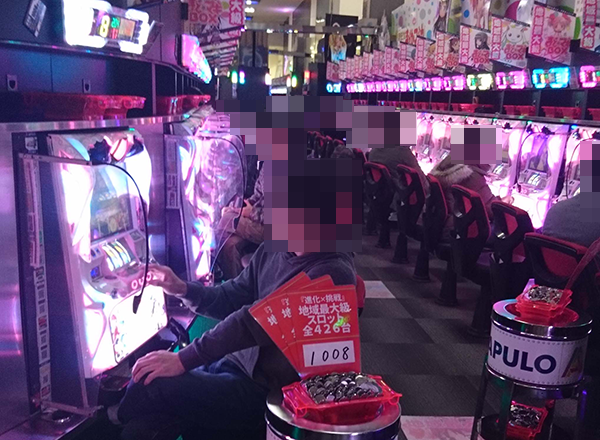 華やかな光景が広がるホール内では、大勢のプレイヤーが笑顔で遊技をおこなっていた。
