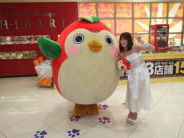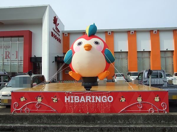お店にいってみると、駐車場には公式キャラクターであるひばりんごのバルーンが設置されていました!