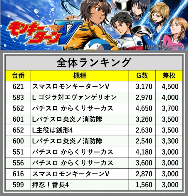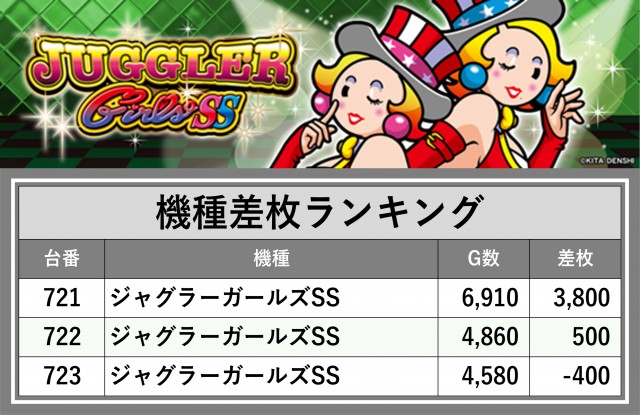 厳選された取材対象機種をはじめ、その他スロット全体から好記録が飛び出した!プレイヤーが楽しんだ1日を下記データにて振り返ってみて欲しい。