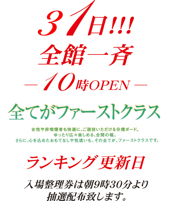 1日!全てがファーストクラス!ランキング更新日!店内装飾一新