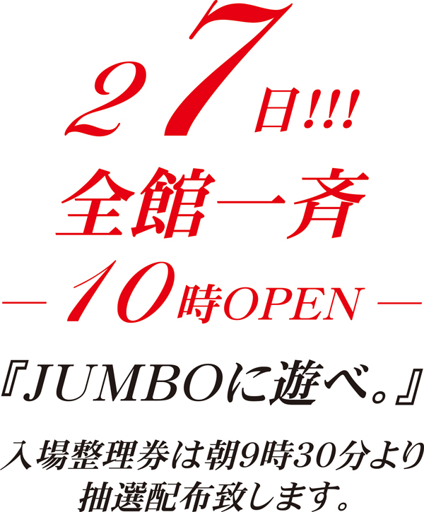 27日!全館一斉10時OPEN「JUMBOに遊べ」